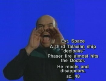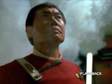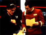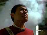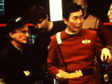 "I thought it was a very imaginative idea to bring a connection between Sulu and Tuvok. It turns out that he was on the bridge of the Excelsior when the Praxis incident happened, and so there we had a story. And when my agent confirmed for me that I was doing a guest shot on [Voyager] I was looking forward to working with the entire cast because I've been watching the series, and the only one I knew was Garrett Wang. I saw him in a play at UCLA when he was a student there, and I thought he was a good young actor, an up-and-coming young man. Now he's doing me at every convention that he goes to! So I was looking forward to working with the entire cast, and my only disappointment was that it was working with just Kate and Tim." |