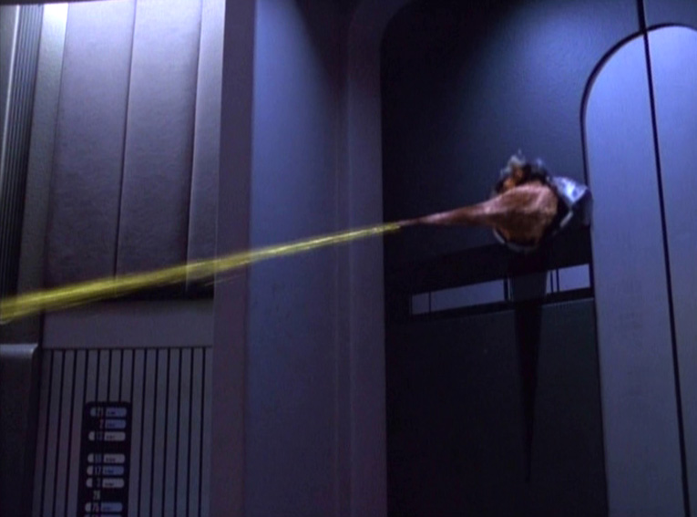 had to push through the turbolift door and squirt their poison